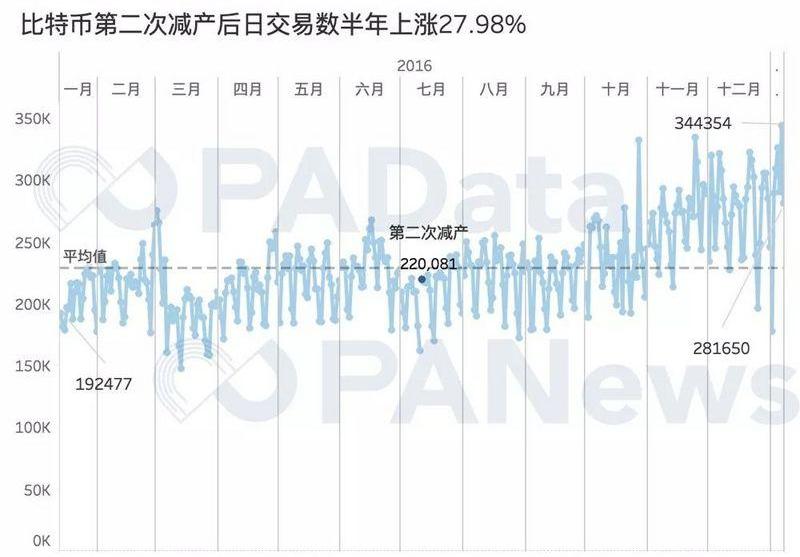 BTC兩次減半幣價上漲明顯,鏈上交易數穩中有升
