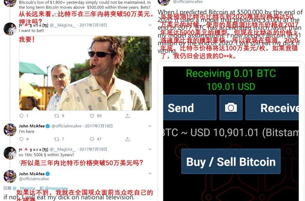 2017年7月18日以及11月29日,殺軟件McAfee創始人JohnMcAfee的推文