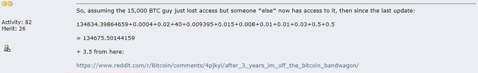 而除了上面提到的可被證明已永久丟失的比特幣之外,網絡內還有很多因為各種各樣奇奇怪怪原因而石沉大海的比特幣。單單是Bitcointalk用戶SgtSpike于2011年在論壇內發起的討論里,就累計記載了約13.5萬枚已無法找回的比特幣。