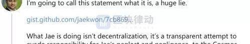 2月?4日,Tendermint實驗室主任ZakiManian在社交媒體直言,JaeKwon此前的公開回復,表面上好聽,實際卻撒了一個逆天大謊,目的是逃避對Cosmos的責任。Zaki的言辭激烈,硝煙味濃郁。