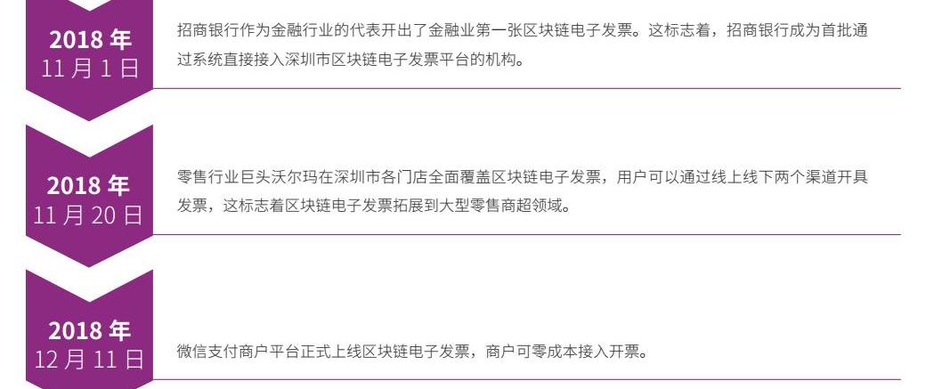 2018年8月,國家稅務總局授權深圳市稅務局試行區塊鏈電子發票,由深圳市稅務局定義行政發行標準和納稅人發票使用規范,騰訊公司提供區塊鏈底層技術支持,最終實現了“資金流、發票流”的二流合一,將發票開具與線上支付的相互結合,打通發票申領,開票、報銷和報稅全流程。區塊鏈電子發票以互聯網產品的形態誕生,做到稅務機關各環節可追溯、業務運行去中心化、納稅辦理線上化和報銷流轉無紙化。