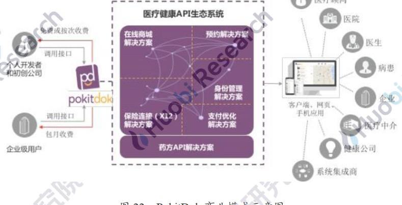 PokitDok為開發人員提供API接口,允許用戶搜索PokitDok供應商目錄,為企業實現線上的商店、預訂、支付和保險等基本服務。同時,PokitDok也為如支付公司、公共衛生系統和醫療健康公司等第三方開發者提供App接口,開發者在平臺上可以便捷使用包括支付處理、保險公司資格審核、轉診、保險賠付、病人身份管理和供應商搜索等功能的軟件框架。
