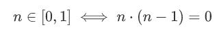 現在確定了要解決的問題之后,我們可以開始思考如何用加法和乘法來表達這個取值關系。還記得在前面的章節,當我們在講一個值n會取值在0和1之間的時候,我們用n*(n-1)=0來約束這個取值范圍。同理可得,如果我們想約束必須要取值于0和5之間的話,我們就可以用更長的一串乘法來約束它: