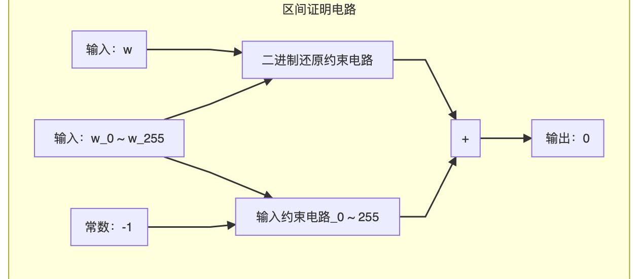 我們把上文提及的256+1=257組約束電路全部拼接在一起,合并成一個輸出。最后生成的電路就是我們可以用來構建證明系統的電路C了。如果C的輸出為0,那么代表了輸入的數字一定要滿足: