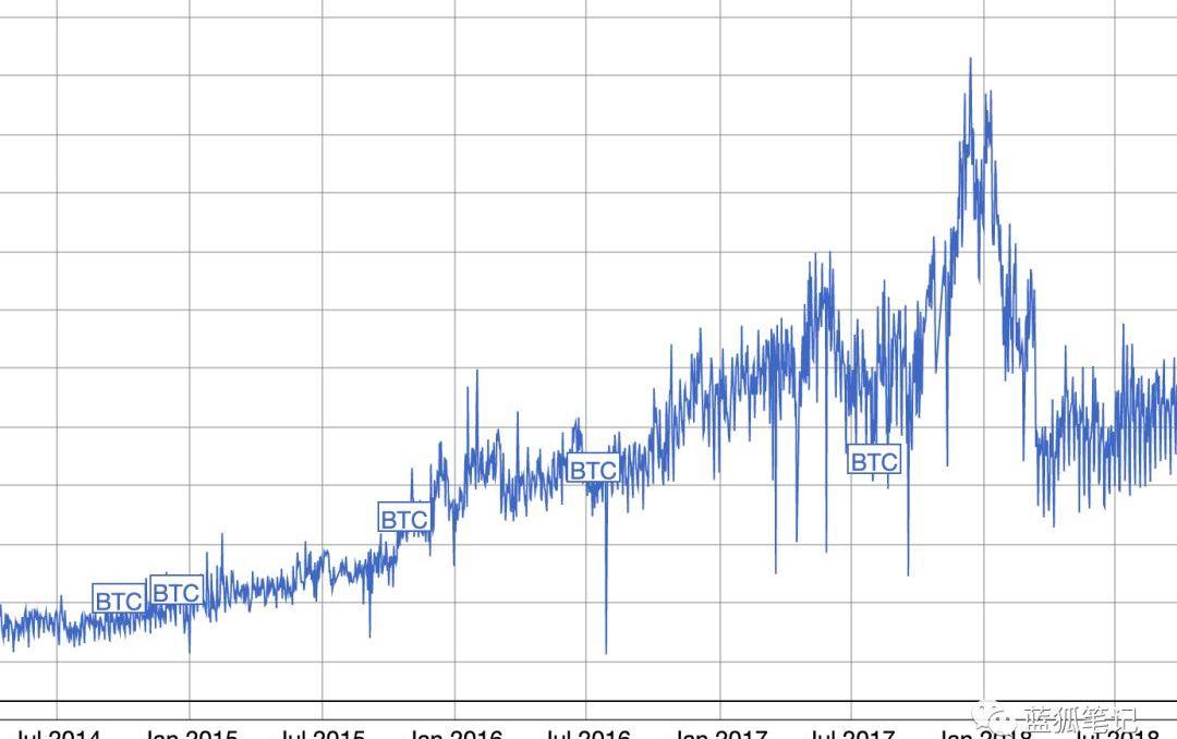 比特幣價格的首次躍升發生在2013年底,其價格首次越過1000美元大關。在抵達第一個高峰之后,比特幣價格回落,跌至250美元左右,并徘徊了好幾年。
