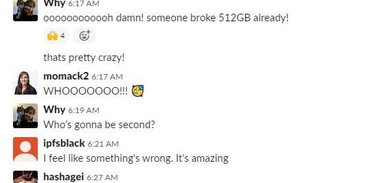 12日晚21:45分,Filecoin官方技術負責人Why突然在Slack上發布了一則“尋人啟事”: