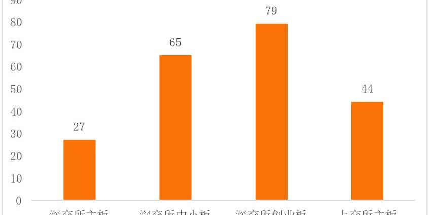 本文圈定的215只區塊鏈概念股分布在A股市場四個上市板塊,分別為深交所主板27只,深交所中小板65只,深交所創業板79只,上交所主板44只。
