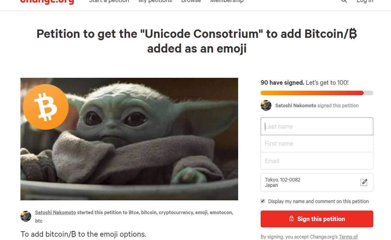 一位匿名人士在Change.org上發起了一項請愿,要求比特幣擁有自己的emoji。這份請愿書針對的是總部位于加州的非營利組織UnicodeConsortium,該組織創建了現代表情符號的標準。