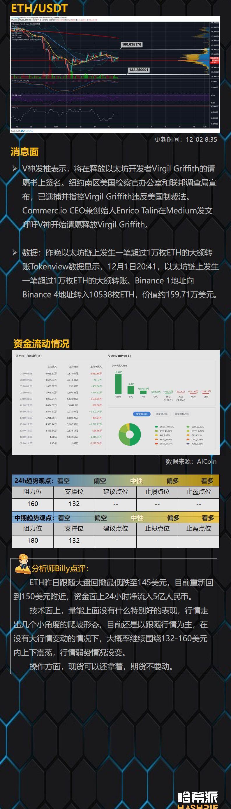 BTC合約多空持倉人數比0.9 季度合約基差擴大至250美元之上:截至10月13日10:30,根據OKEx交易大數據,BTC合約多空持倉人數比為0.9,市場多空人數逐漸偏向均衡;而季度合約基差繼續擴大至250美元上方,永續合約資金費率維持在0值附近,交割及永續合約持倉總量超過9億美元,短線多軍仍有一定優勢;不過,BTC交割及永續合約精英持倉方面,做空賬戶比為50%占據優勢,多頭持倉比為18.39%占據優勢,精英賬戶多空雙方出現分歧,關注大戶持倉變化。從期權合約數據來看,看漲/看跌主動買入量比為1.56,主動看漲量占一定優勢。[2020/10/13]
