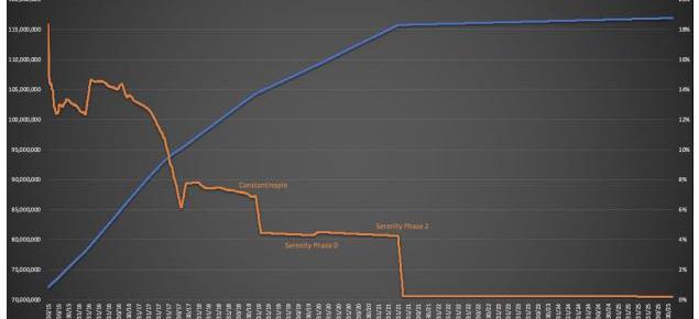 由于最大總供應量不確定,DASH的開采將持續192年,直到需要一年的時間才能開采單個Dash。到2209年時,只能再挖出14個DASH,而挖出最后一個DASH需要231年。