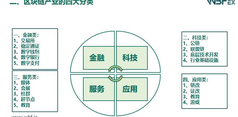 我們把區塊鏈這個產業分成4個類型,分別是金融板塊、應用板塊、服務板塊及科技板塊。