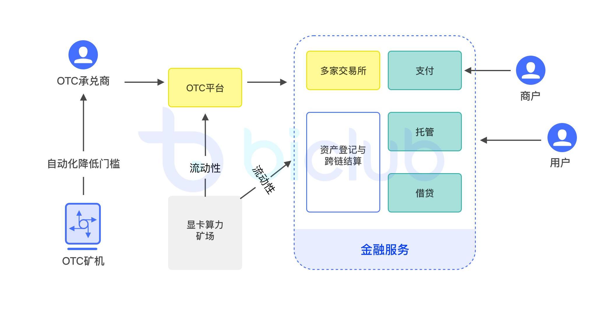 基于此,BiClub技術團隊通過不懈的努力,打造了穩定的OTC承兌及清結算平臺,后端通過自動化和有效的AML風控完善承兌商體系,前端可以向跨境貿易、跨境娛樂、DeFi應用、Dapps、交易所等輸出基于數字貨幣的支付、資產托管、清結算和流動性能力。