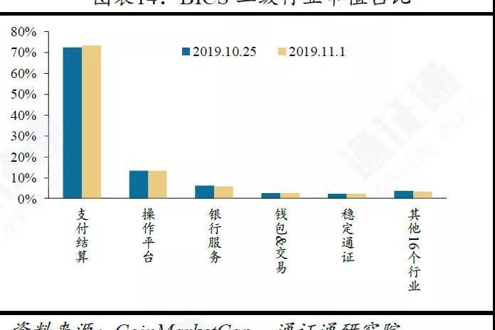 本周通證數量增長較為明顯的BICS二級行業為操作平臺、項目服務和信息技術,下降較為明顯的分別為支付結算和專業服務。