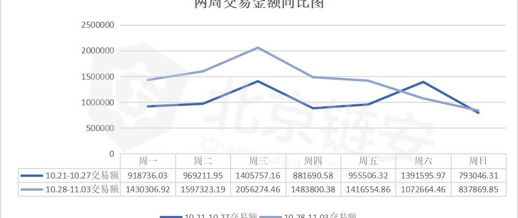 10.21-10.27:1106010.28-11.03:10079較之前一周下降:8.87%詳細數據圖如下:
