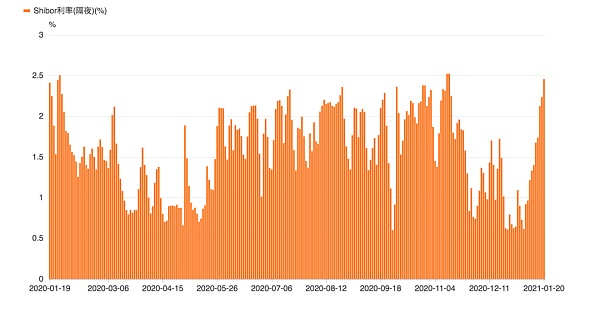 圖2:過去一年上海銀行間隔夜拆借利率(Shibor)?