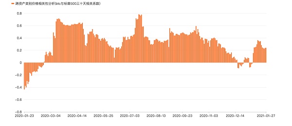 圖 12 比特幣與美國股市標普 500 指數 30 天動態加權(指數衰減)相關系數