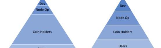 在這種情況下,鏈上治理的權利分配就是真正的金字塔結構。雖然有些人可能同時是代幣持有者和用戶,或者即使大多數用戶都是代幣持有者,但采用權益加權投票的鏈上治理還是不公平,代幣持有者擁有更多權力。即使在財富分布均勻的網絡中,該系統也賦予用戶更多權力,并在很大程度上剝奪了節點運營者和開發人員的權利,即使他們都在區塊鏈中扮演了關鍵角色。