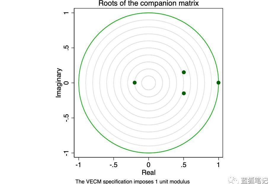 具有K個內生變量和r個協整方程的VECM伴隨矩陣具有Kr單位特征值。如果過程是穩定的,則剩余r特征值的系數嚴格小于1。由于特征值的系數沒有總分布,因此很難確定系數與另一個系數是否接近。