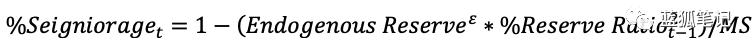 指數因子有助于進一步貼現內生資產的價值,因為它們不是外生資產的直接替代品。這一因素還加速了在發生經濟沖擊時外生儲備的供給,這是一個有效的冗余水平。以上調整得出如下等式,它根據有效內生準備金價值和外生準備金比率,分配給外生準備金的鑄幣稅百分比方程式: