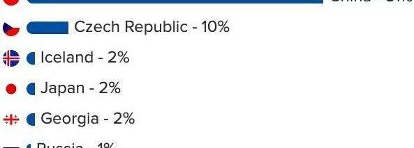 高度中心化的原因是比特幣挖礦需要大量的電力,從而將礦工吸引到電力廉價的國家來。其他高度中心化的國家包括捷克共和國、冰島和日本,究其原因同是追求廉價電力。