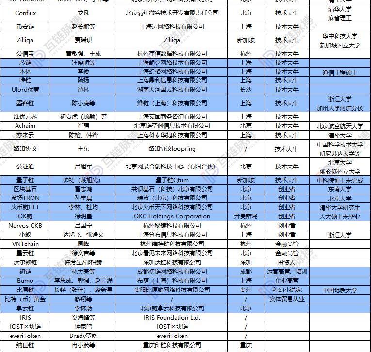 或許是公鏈領軍人的學習經歷,這些公鏈的技術團隊在“安營扎寨”的選擇上,多傾向于學校所在地。統計顯示,落地北京的公鏈項目共有十個。