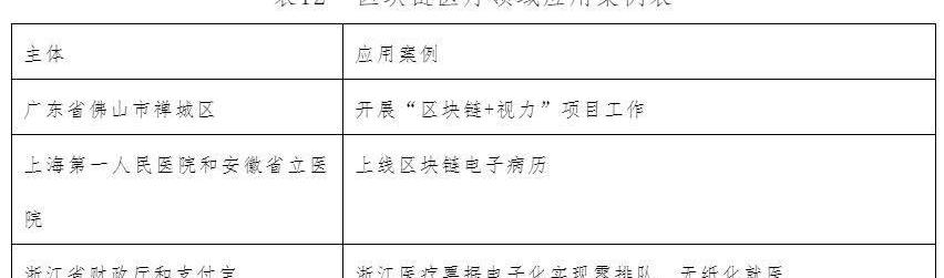 七是醫療領域應用逐步落地。當前區塊鏈技術在醫療領域有廣闊的應用前景,成為我國醫療行業創新發展的一個重要關注點。在地方政府和行業領軍企業的共同努力下,一批專門面向醫療行業的區塊鏈應用平臺相繼啟動,醫療領域對區塊鏈技術有著強烈的需求。