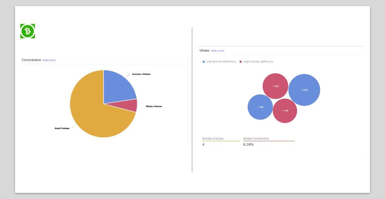 大型投資者通常與價格上漲有關。在一些代幣中,大戶主要扮演被動投資者的角色,而在另一些代幣中,大戶交易活躍,導致價格波動。大戶活動分析顯示了大型投資者的交易活動。BCH的分析如下: