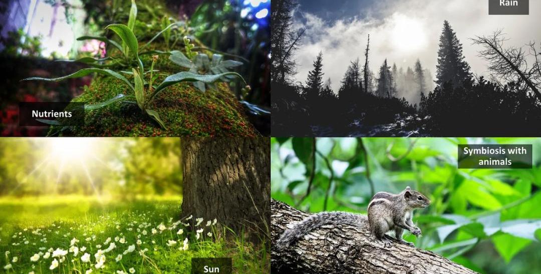 這棵樹與其周圍環境形成了共生關系——與松鼠、蚯蚓、草等等。