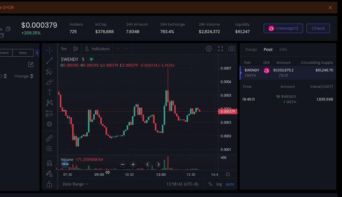 看流通市值,因為流動市值是大部分行情軟件突出展示的,比fdv更為敏感。meme添加資金池后,市值極小甚至幾千刀,只要有幾十個人小額進入,市值很快就破千萬,拉出第一個千倍漲幅。一般而言,我們要在1000萬市值以下進入會更為安全5000萬以上的市值,一般我們只好擺擺手啦。
