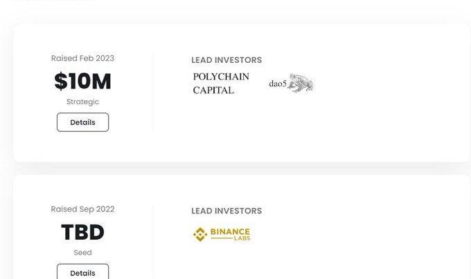 我篩選了融資1000W美元以上的網站,看到了熟悉的polychain作為投資方A輪投了個1500W美元,再打開詳情界面仔細一看,熟悉的味道與配方,幣安labs,animoca,還有dao5,關于dao5我不是太了解,只是從@wsdxbz1王老師過去推特只言片語中猜測很吊