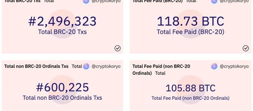 目前,已經支付了約350萬美元的費用來銘刻BRC-20代幣。