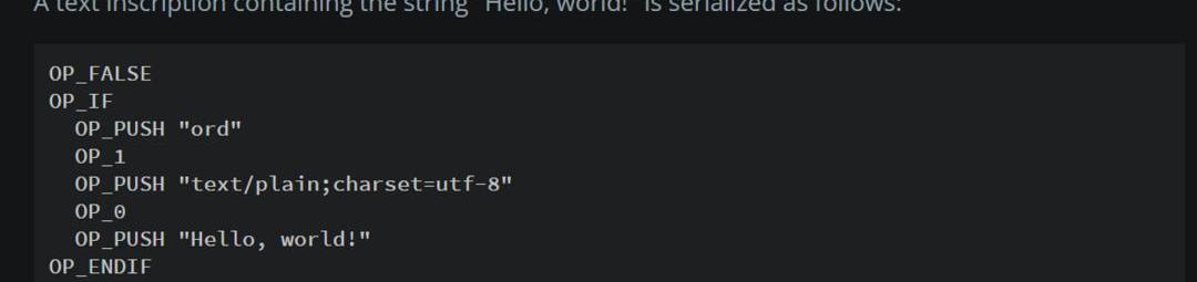 這些唯一的聰可以被「銘刻」任意內容,例如文本、圖像、視頻等,從而創建出「銘文」。銘文是比特幣NFT中metadata的概念,在鏈上存儲在taproot腳本中。
