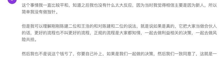 最后我們進行了一輪表態,就是每個人說一說自己到底對于這件事情的理解,以及是否知情這次操作,當時那場會議包含我和馬鑫6人參加,另外四人均表態對于這次操作不知情,三人表示震驚,1人表示無所謂,這場會議全程馬鑫進行了錄屏,為自我保護我也錄音了。