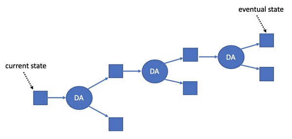 每個狀態最多有一個爭議斷言跟在其后。如果某個狀態后沒有爭議斷言,那么任何人都可以在其后創建一個爭議斷言,作為一個新的分支點。從而產生一顆多種可能的未來之樹。