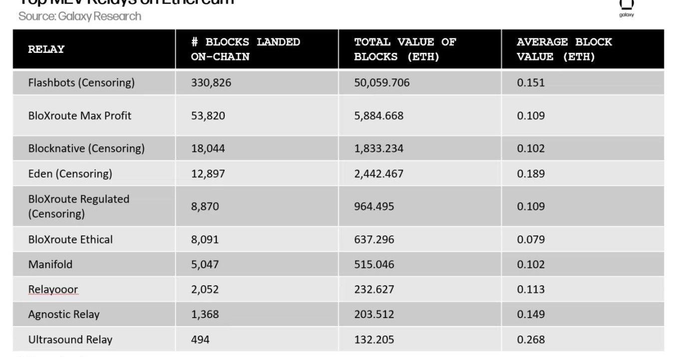 本報告將概述以太坊合并后的MEV格局。首先,我們將概述MEV-Boost架構及其主要利益相關者,包括搜索者、區塊構建者、中繼器和驗證者。然后,我們將討論由于MEV-Boost以及以太坊核心開發人員和Flashbots團隊正在開發的長期解決方案來解決這些問題而引起的中繼器審查和構建者中心化的擔憂。要深入了解以太坊上MEV的基礎知識,包括它是什么、它是如何創建的以及它與傳統金融的相似之處,請閱讀這份GalaxyResearch報告作為本報告的基礎。