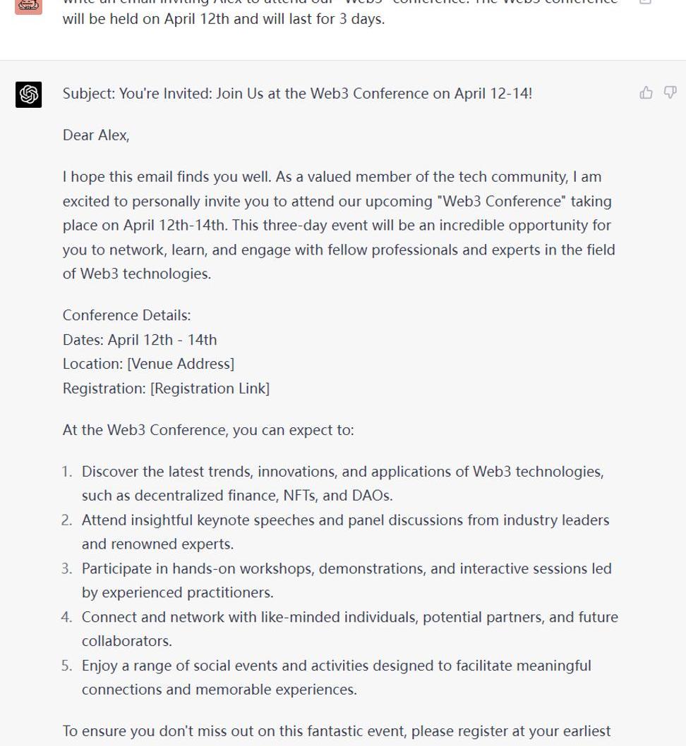 ?如果GPT完美地處理了你的任務,你可以說GoodJob或者謝謝。因為我讓GPT寫指令時,它自己都會加上“謝謝”。而且,你適當地給與正反饋,會讓它清楚你想要的需求是什么。這也是神經模型的一部分。最重要的是,我真心感謝它,幫我處理了很多事情。