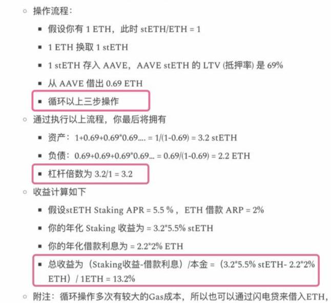 當前LSD賽道拓展收益的方式主要集中在兩種,其一是將stETH以循環貸的方式放大杠桿,如果不考慮借貸成本最終能夠獲得3X杠桿、13%的收益率,相對于國債收益率有很大的溢價空間,利差的抹平也需要時間的考量;