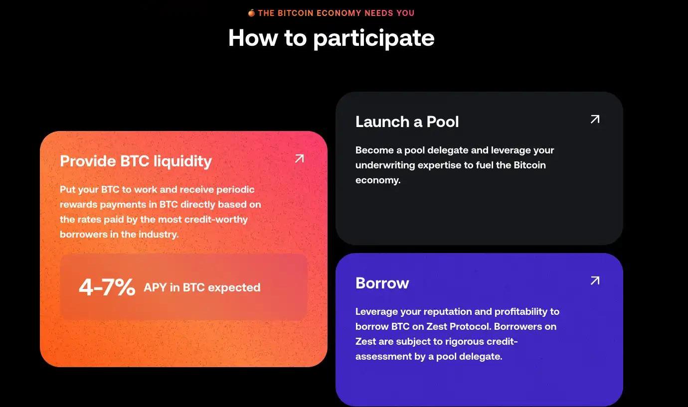 ZestProtocol是一個基于比特幣的去中心化借貸平臺。Zest的智能合約使比特幣流動性提供者能夠通過借貸池賺取比特幣收益。對于借款人來說,Zest可直接根據其資產負債表提供鏈上比特幣貸款。