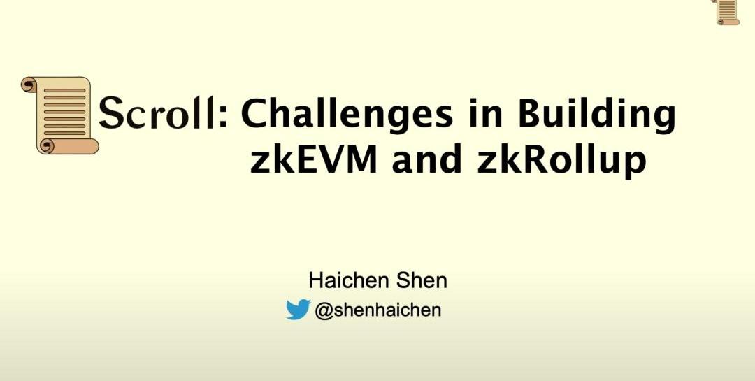 XRP/HKD-1.38%在ETHDenver的Devtopia舞臺上,Scroll的聯合創始人HaichenShen發表了主題為Scroll構建zkEVM和zkRollup的挑戰的演講,并同步了最新Alpha測試網的情況。