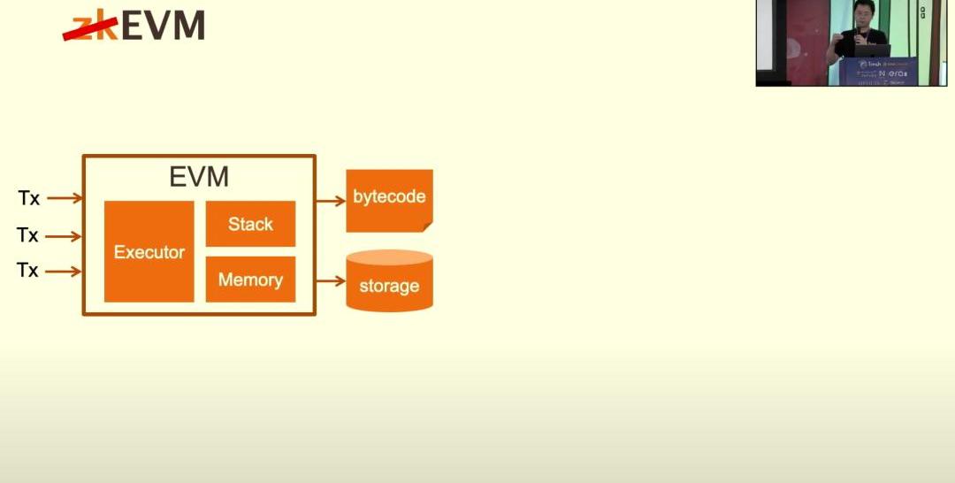 編寫zkEVM在編寫zkEVM中,Haichen拆解了zk和EVM兩個部分。EVM中有三個組成部分,Executor,Stack,Memory。