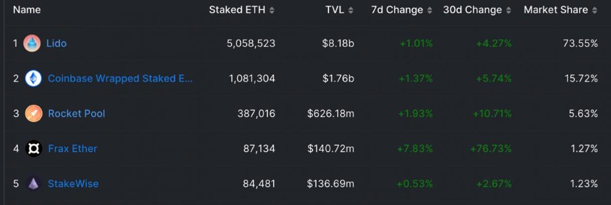 最簡單的方式是到中心化交易所CEX質押,例如Coinbase。而對于不喜CEX的用戶也可以選擇市場上類似Lido.RocketPooL,Stakewise,Ankr,Frax,Stafi等協議參與質押,拼押模式也對于無法湊齊32個ETH的投資者很友好,但需要一定的服務費提供給服務商。