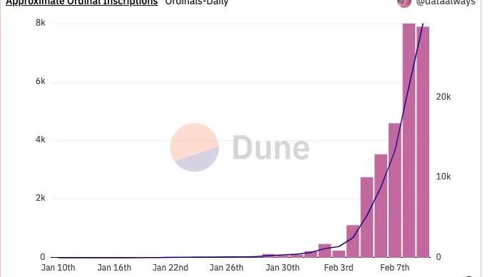 XRP/HKD-2%軟件工程師CaseyRodarmor于1月21日在比特幣主網上推出了Ordinals協議。它允許將圖像、文本、程序甚至視頻游戲等數字作品直接刻在比特幣區塊鏈上。簡單來說,Ordinals就是比特幣上的?NFT。