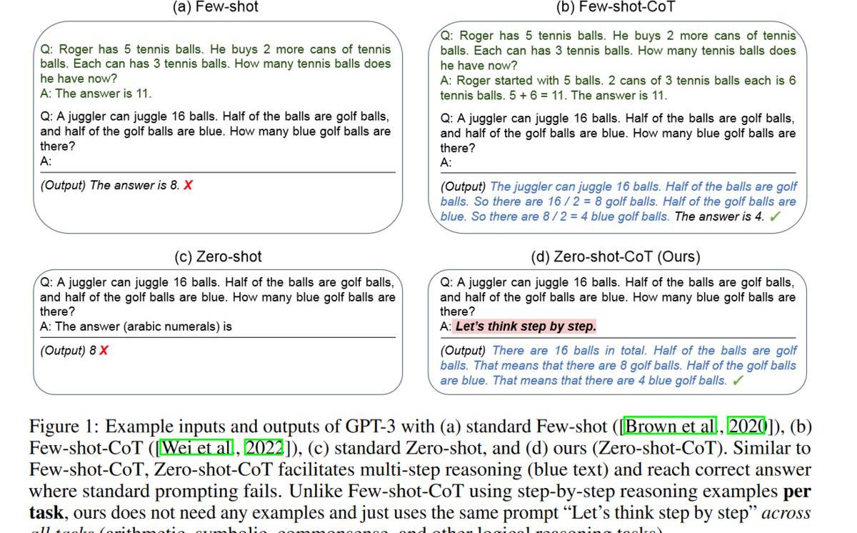 CoT確實很酷,改變了我們之前對LLM的認知,但是還不夠酷:很多時候我們不一定能湊夠8個樣本(我就無法快速給出8個帶有解題步驟的數學題),那能不能在zero-shot下讓模型自己給出解題思路跟答案呢?