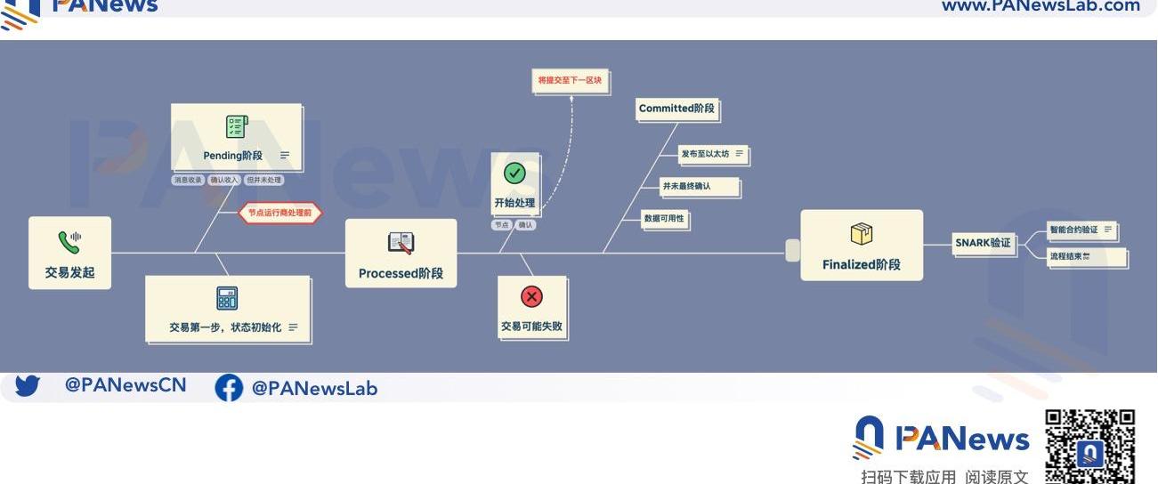 在標準的zkSync區塊生命周期中,基本上可以分為四步走,從交易啟動到最終確認一般需要花費3-5個小時,這也是其比Optimistic平均一周確認時間的最大優勢所在。