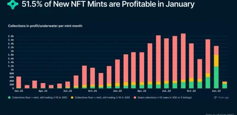 更多的證據表明,NFT正在回歸,數據顯示,超過一半的NFT鑄造是盈利的。