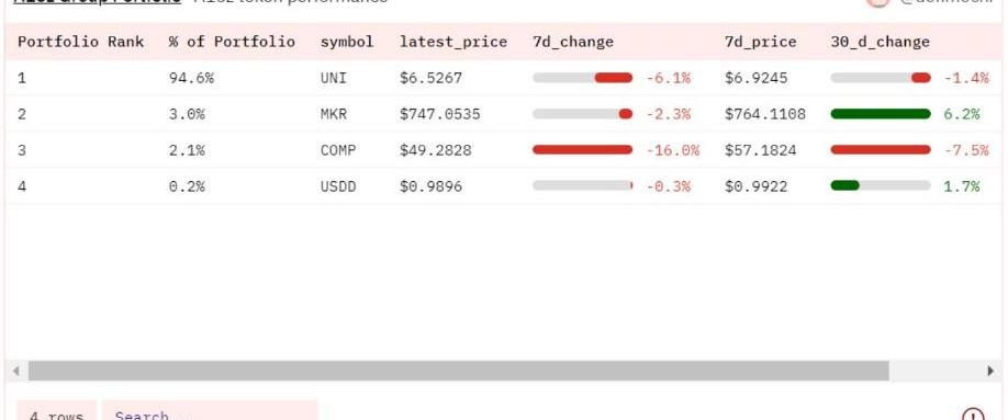 a16z已知的加密投資組合規模超過1億美元,現階段達到109,713,485美元。在這家“老牌”投資機構的加密組合里,持有量最多的是UNI和MKR,但最近這些代幣的表現其實并不盡如人意。