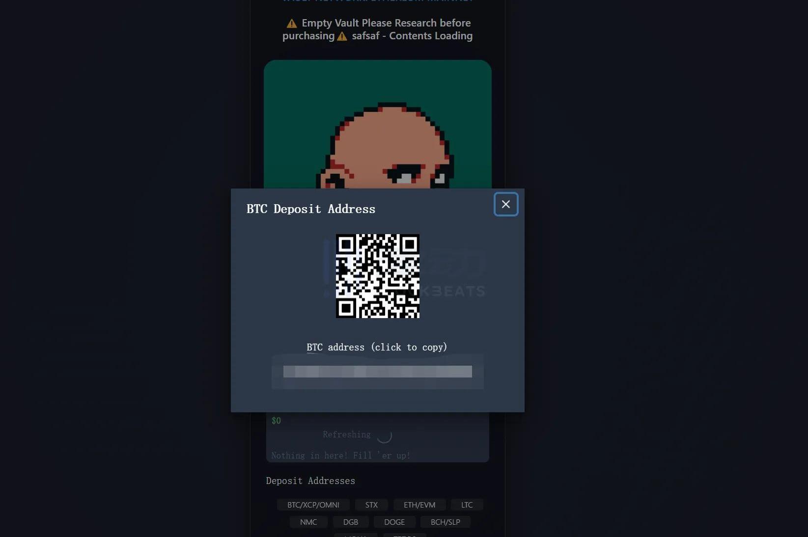 這里又有一個防騙重點。如上圖所示,很多BitcoinPunks的價格并不貴。但實際上,真BitcoinPunks的成交價普遍在0.5ETH以上。這些低價BitcoinPunks甚至都不是假圖,而是Vault里根本就沒有任何比特幣NFT。
