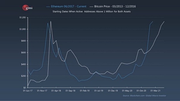 Raoul想出了一個簡單的方法來衡量比特幣和以太坊的未來潛在價格。這兩種加密貨幣都有一個被稱為地址的概念。一個地址就像一個用戶的賬戶。