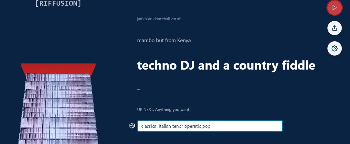 AI生成音樂最常見的玩法是用戶輸入一段文字或者一張圖片,模型根據內容輸出一段音樂,對應的產品可以關注?Riffusion,它除了實現以上功能外還能在不同風格輸入之間自然轉換。