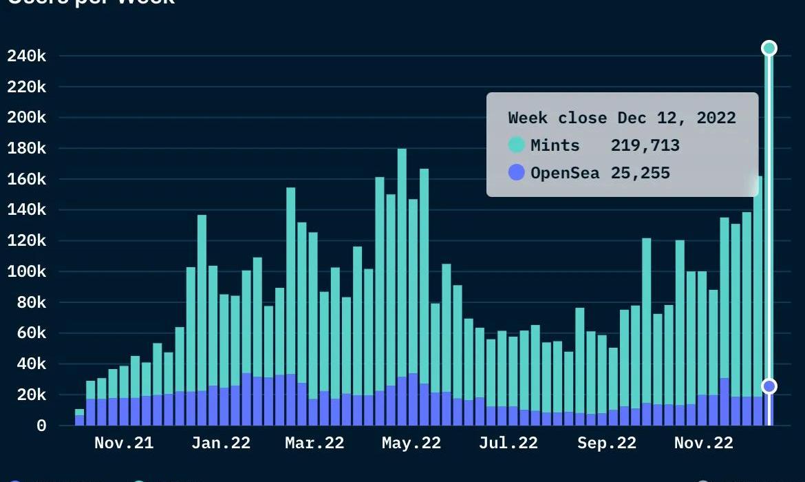 12月12日,超過8.4萬名回歸用戶在OpenSea上購買了PolygonNFT,比11月5日增加了超過630%!